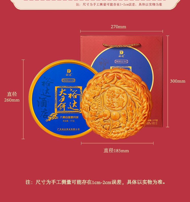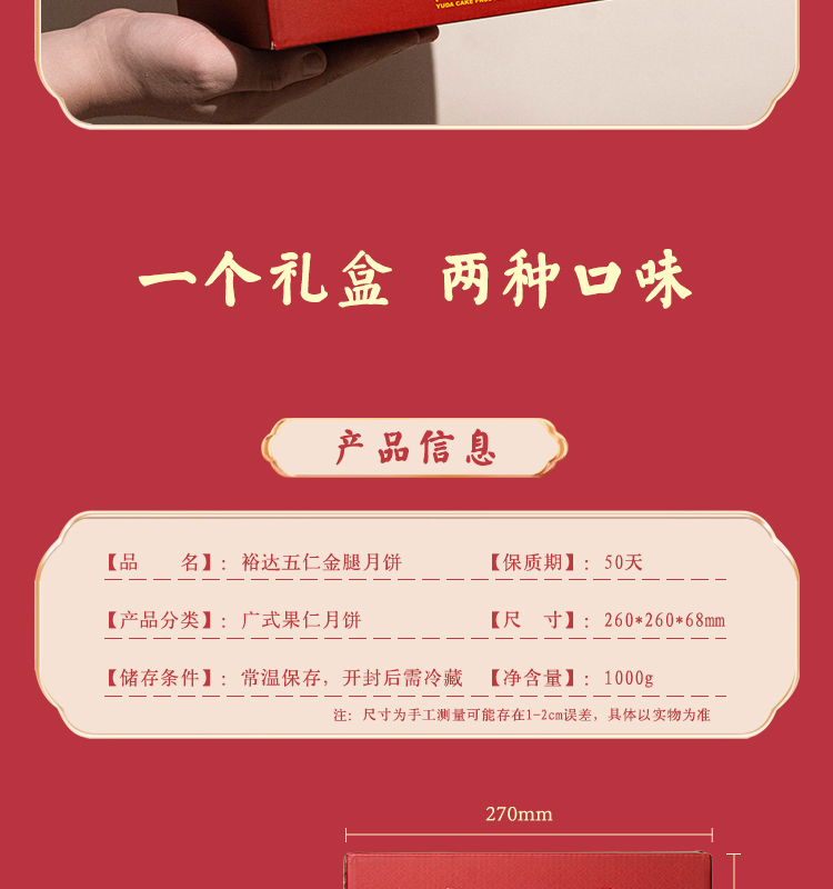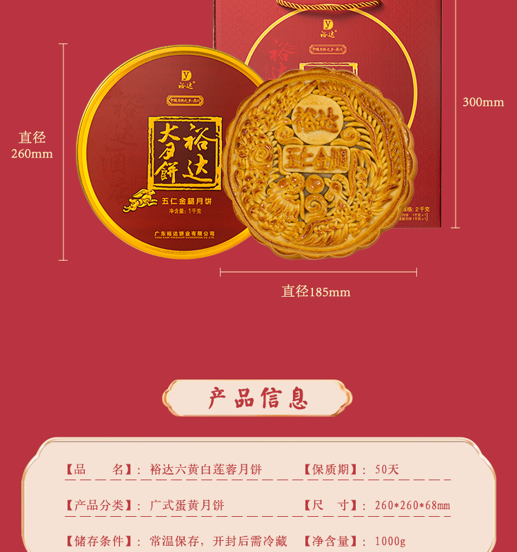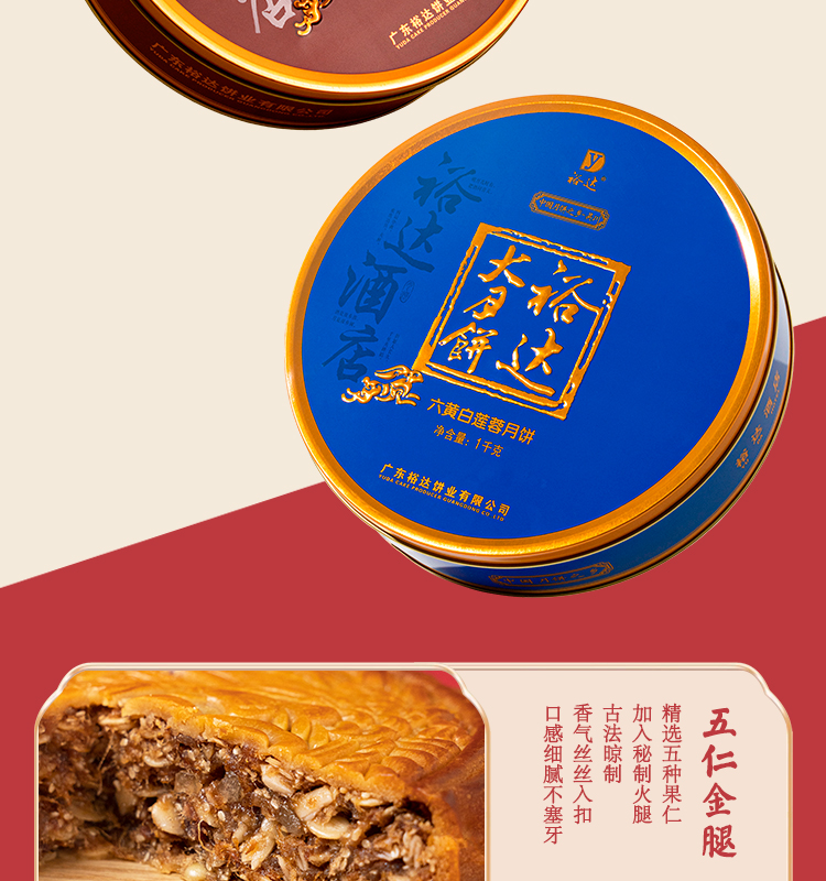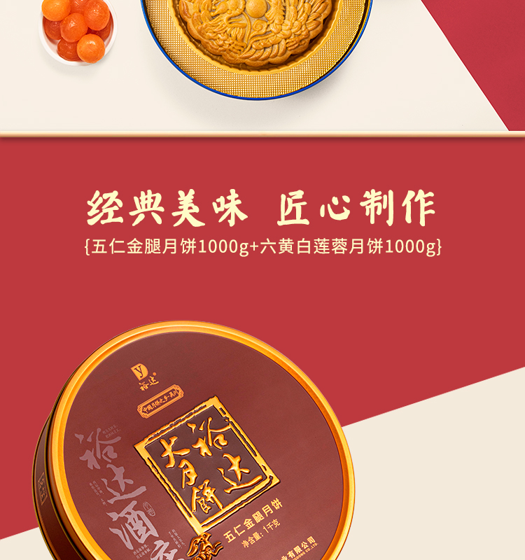 规格:1千克五仁金腿月饼x1 1千克六黄白莲蓉月饼x1
